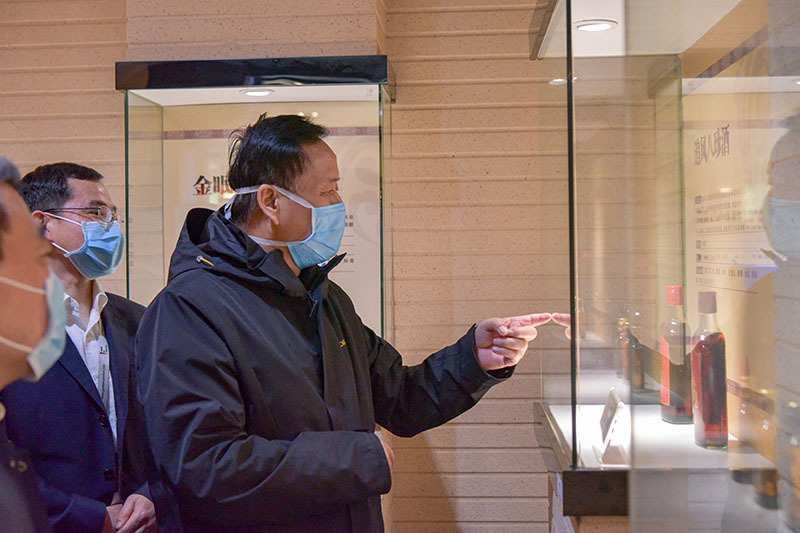 仝小林院士一行先后参观了劲牌展馆、持正堂药业,了解了劲牌历史文化、经营现状等情况,和劲牌持正堂药业生产捐赠抗疫中药制剂的相关工作。